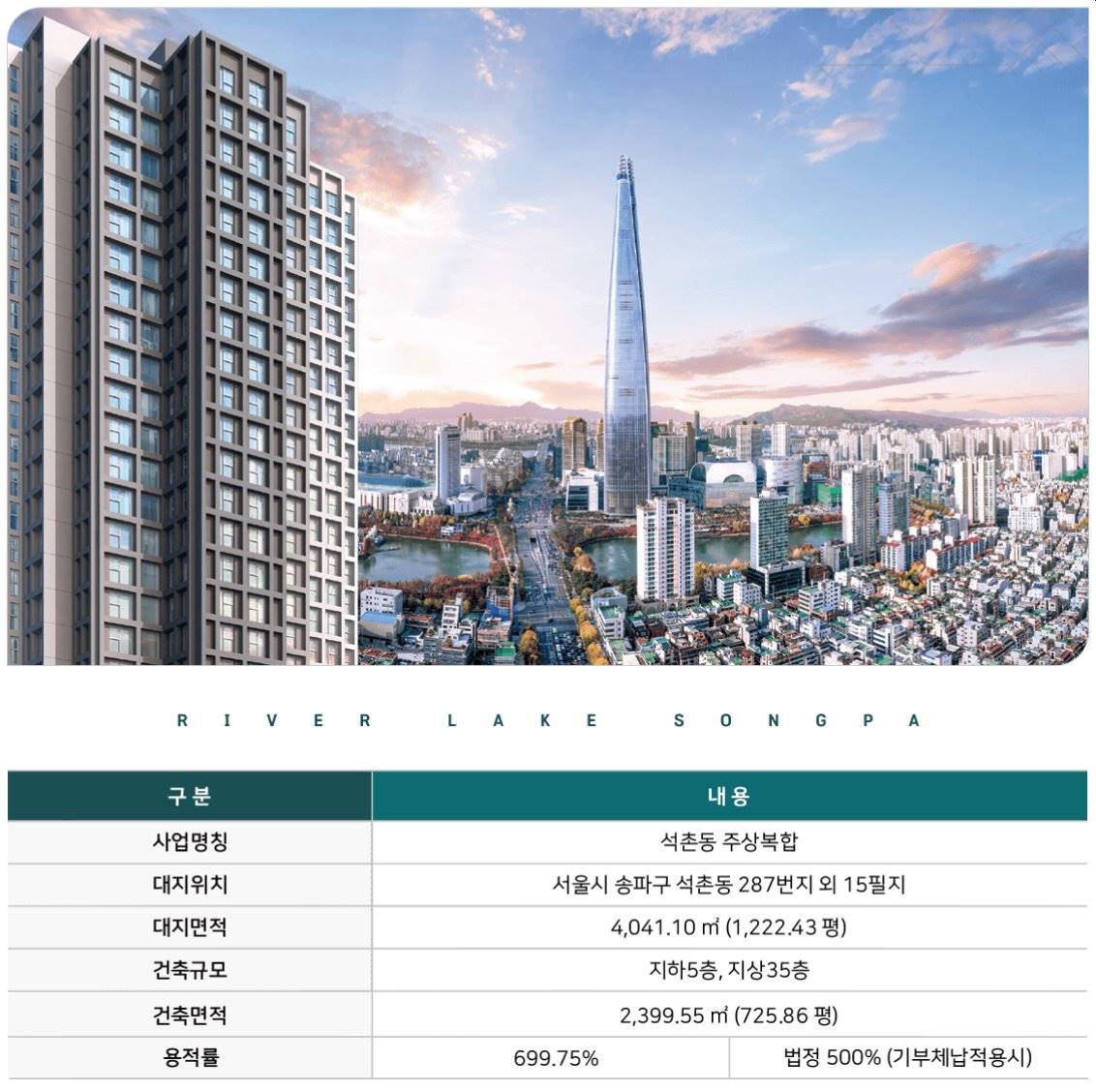 단지 이름처럼 한강과 탄천의 아름다운 조망을 영구적으로 누릴 수 있는 송파구 최고급 주거지역의 희소한 입지를 선점합니다.